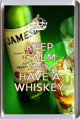 -. Title : KEEP CALM and HAVE A WHISKEY Fridge Magnet P.R.Inted on an image of a bottle of Jamesons and two glasses. A unique gift for an Irish Whiskey Lover.