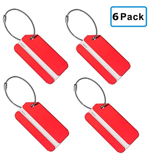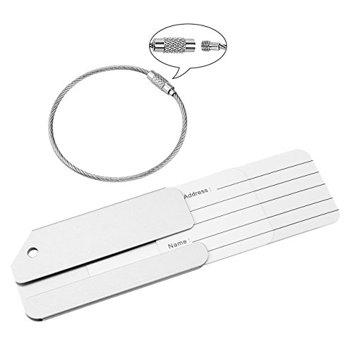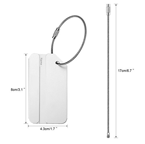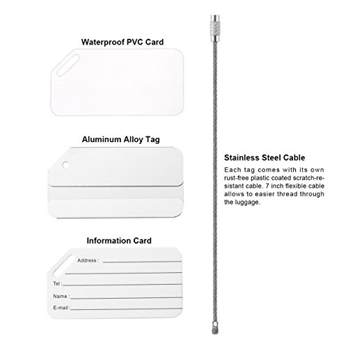 Travel id tags in Perfect Size easily match on all kinds of luggage, suitcases, baggage, bags and backpacks. Come with plastic coated metal cable, the name tags can be attached closely to your luggage, without scratching. The wire connected with rust-free screw connector, easily hangs up, prevent the tags falling off on the way.