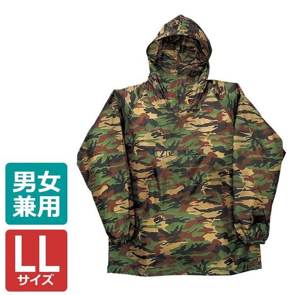 風よけ汚れよけに最適です。ひっくり返すと胸ポケットに本体を収納できますので、持ち運びにも便利です。 製造国:ミャンマー、中国 素材・材質:ナイロン100% 仕様:手洗い可 ※サプライヤー直送品 ご注文後2~3営業日後の出荷となります【商品名】カジメイク 迷彩ヤッケ グリーン LL 2217
