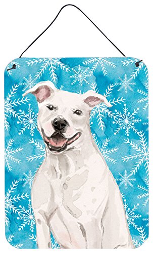 Caroline's Treasures White Staffie Bull Terrier Winter Metal Print, 16" x 12", Multicolor