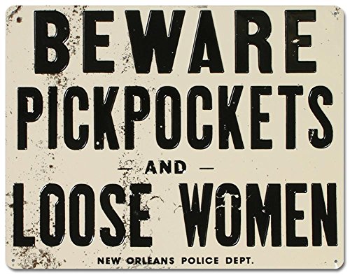 Beware of Pickpockets And Loose Women Tin Sign 11 x 14in