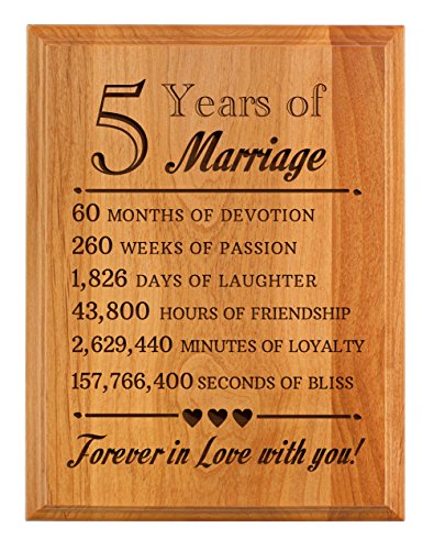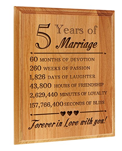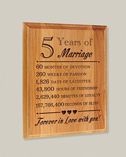 Engraved wood plaques make great 5th wedding anniversary gifts for her, wedding anniversary gifts for him, or wedding anniversary gifts for the couple.