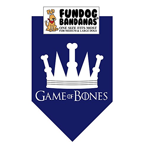-. Binding : Misc. -. Brand : FunDog Bandanas -. Color : Multi-colored -. Feature : Cute! / Fun! / Affordable! / Makes a great gift! / Simple tie-on design for ease of use! -. Label : The Dog Perk Corporation -. Manufacturer : The Dog Perk Corporation -. PackageQuantity : 1 -. ProductGroup : Pet Products -. ProductTypeName : PET_SUPPLIES -. Publisher : The Dog Perk Corporation -. Size : Miniature Size for Small Dogs -. Studio : The Dog Perk Corporation -. Title : BANDANA - Game of Bones