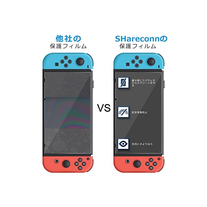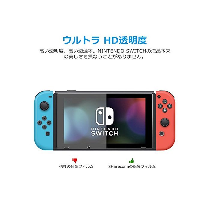 SHareconn Nintendo Switch 강화 유리 필름 액정 화면 보호 대응 스크린 씨트 경도9H 닌텐도 닌텐도 스위치 본체용 기포 방지 투명 클리어 내지문 AGC 방폭렬 2.5D touch