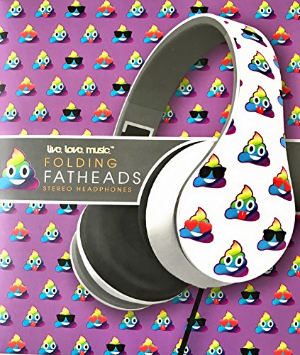 -. Title : Live Love Music Folding Fatheads Stereo Headphones Emojis Poop Emoji White and Gray Set