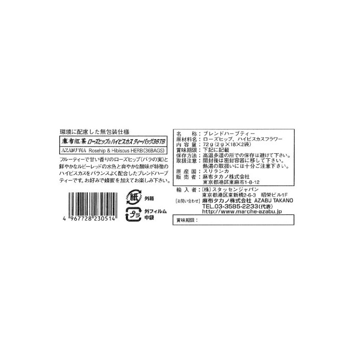 원본상품명: 麻布紅茶 ロ?ズヒップ&ハイビスカスティ? 72g(2g×36TB)
