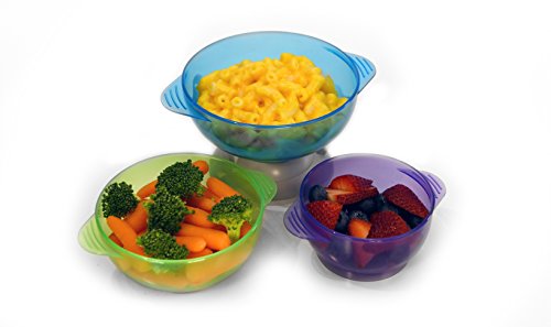 -. Feature : Includes 3 spill proof bowls with 3 corresponding snap tight lids and 1 vacuum cup (additional bowls and lids can be purchased separately without the vacuum cup). Perfect for baby and toddler feeding. / Unique interchangeable feeding system. Patent pending vacuum cup provides suction far superior to anything else on the market for stay put mess free feeding (each vacuum cup tested to have at least 4 hours of continuous suction). / Bowls and lids are microwave safe and top rack dishwasher safe. Bowls also nest for easy storage. / BPA, lead, phthalate, and PVC free / Invented by a board certified pediatrician and a mom