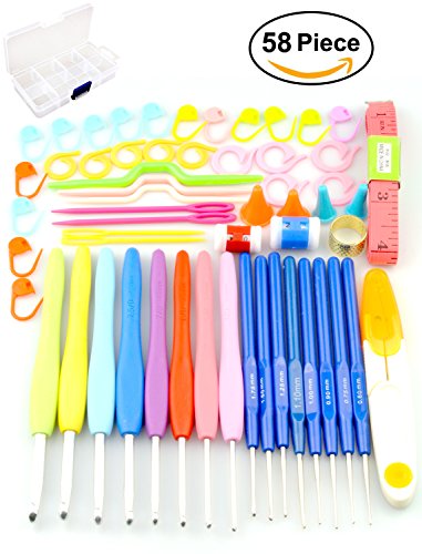 Maydahui Crochet Hooks set, Knitting Needle Kit (Pack of 58) ,Ergonomic Soft Rubber Grip Handle 0.6-6mm size with Complete Knitting Needle Accessories for Arthritic Hands