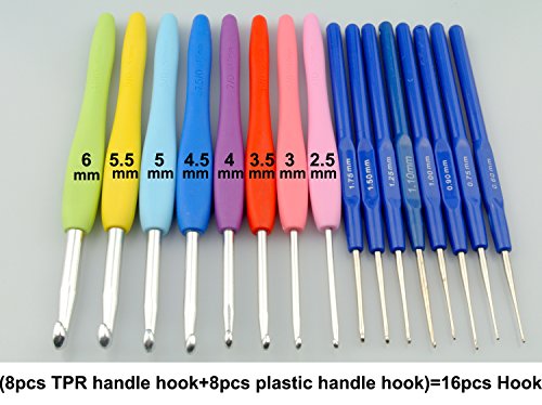 - This All-in-One Crochet Kit included 16 different size hooks: 0.6mm /0.75mm /0.9mm/ 1.0mm /1.10mm /1.25mm/ 1.50mm/ 1. 75mm /2.5mm /3.0mm /3.5mm /4.0mm /4.5mm /5.0mm /5.5mm /6.0mm; Absolutely meet your needs as a Seasoned Crocheter Or Craft Lover