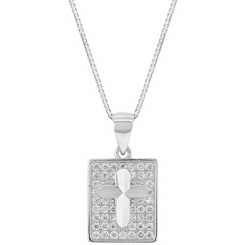 -. Feature : 925 Sterling Silver Cross Necklace Clear CZ Medal / Medal Size: 0.51 in H x 0.39 in W (13mm x 10mm) - Chain Length: 16" (40cm) / Perfect Gift for First First Holy Communion, First Reconciliation or Confirmation / Age Group: Ideal for Little Kids and Young Teens; Gift Box Included / Total Satisfaction Guaranteed: 30 Day Money Back Guarantee