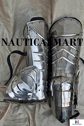 Studio : NAUTICALMART INC Publisher : NAUTICALMART INC Product Description Here are functional, historically accurate cussies with poleyns (knee protection), protecting both front and the back of a tight. Fits most of the 14-15th century European armor suits. Genuine leather straps. Comes in 18GA Mild steel, Stainless, and Hardened Spring steel for full-contact SCA fighting. MANUFACTURED SOLD BY NAUTICALMART INC. 0