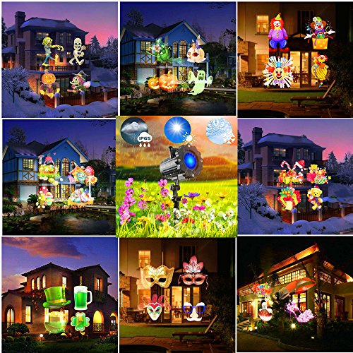 -. Feature : ☸NEWEST VERSION PROJECTOR LIGHTS : Not the same light, not the same as life. Extraordinary experience, personality publicity, so that your life is different. With this projector, you will live in a festive atmosphere every day. / ☸BROAD APPLICATION : With this holiday projection lamp, the kids will have a perfect childhood, the elderly have a happy old life. Young people will continue to create miracles. Husband and wife's life will be more and more beautiful. The world is beautiful for it. / ☸VERY BRIGHT AND HIGH QUALITY : Built-in Intelligent IC,16 pattern led moving landscape spotlights, heart shape, snowflake,rabbit,balloon, santa, christmas tree, pumpkin, ghost, gift, skull, santa, snowman, star. ideal for interior and exterior walls.The best projection distance is 5-8 meters includes remote control. Many function you can control : Timer&Speed Control Function.Our remote control is all-round, within 18 meters can be controlled, so you live better. / ☸WATERPROOF AND SAFTY : Waterproof led light show projector IP65 level, Withstanding all kinds of weather, create safety light points each less than 1mw, CE, ROHS, FCC approved. Lights no hurt to human. Our projection lamp can be used in indoor and outdoor. Suitable for many festivals and occasions. Valentines day, birthday, wedding, party, bar, holiday, Halloween, christmas projector lights/decoration。 / ☸100% SATISFACTION GUARANTEE : 30 day back money guarantee and 12 month warranty.