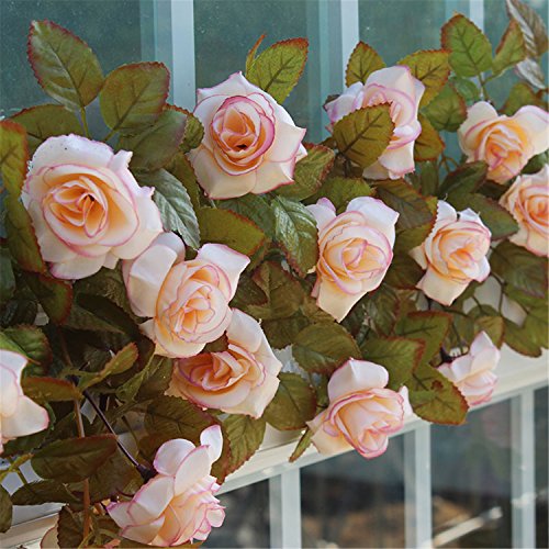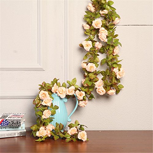 Easy to wash and keep clean, Simple installation Artificial rose flowers hanging vines- well made and vibrantly colored- looks real-like. With a real touch performance. Perfect for Used for weddings, hotels, parties as well as other ceremonies, best decoration for home, hotel and park, etc. It is great for wedding bouquet, party , office decoration ,decor, altar, church ,corsages, pew bows, reception centerpieces