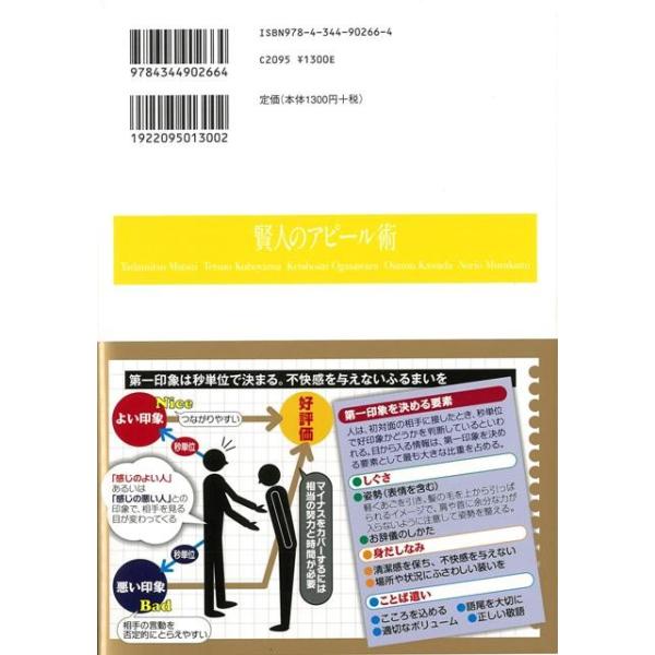 【商品基本情報】 商品名称:賢人のアピール術 著者/出版社:松井 忠三/松井 忠三 初版発行日:2013/04/25 サイズ:A5判 ページ数:159 ISBN/JAN:9784344902664/4528189330047