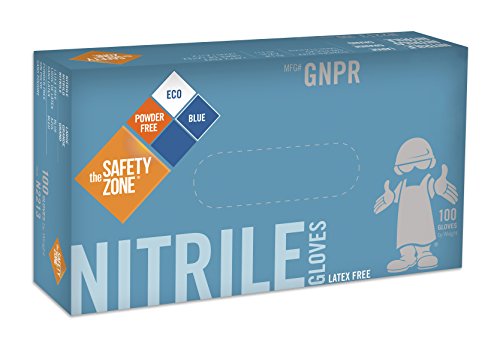 The Safety Zone GNPR-SM-1E Powder Free Disposable Blue Nitrile Gloves, Small (Box of 100)