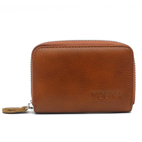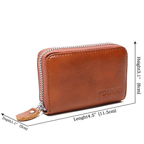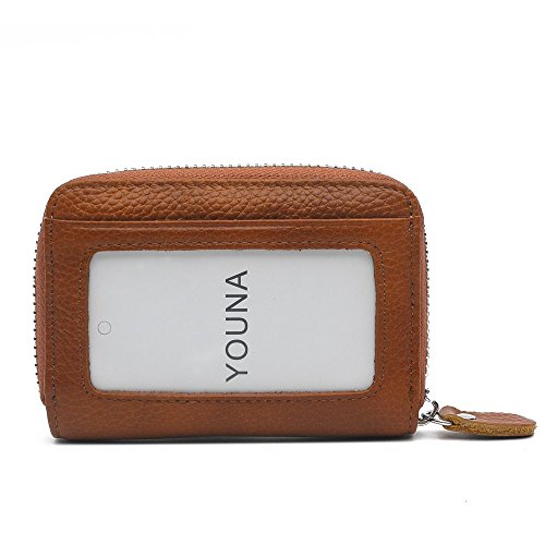 Credit Card Wallet,YOUNA Rfid Blocking Genuine Leather Credit Card Wallet for Women With ID Window Coffee