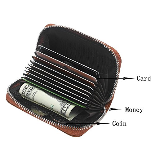 Credit card holder structure:9 credit card slots,2 cash slots ,1 zippered coin pocket and ID window. Each can fit 2 or more cards,big currency pocket. Convenient feature for those who travel.