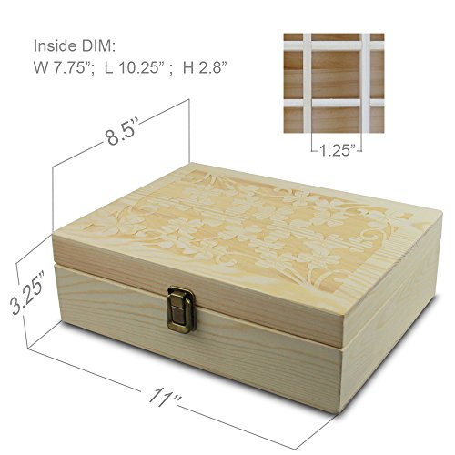 - ►100% NATURAL PINE WOOD. Most wooden essential oil storage box on Amazon are made of plywood, but this one is made of 100% unfinished Natural Pine Wood, even if the Lattice. And this wooden box is nice and sturdy and craftsmanship is wonderful, it's perfect partner for personal beauty care fragrance aromatherapy.