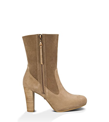 Studio : Deckers Outdoor Corporation Publisher : Deckers Outdoor Corporation Binding : Apparel Product Description The Athena mixes soft suede and textured leather in a versatile silhouette that can be worn up or folded down. A stacked heel provides some height, while a foam insole lined with leather and sheepskin keeps you comfortably cushioned. Details: Leather and suede 3 ½" heel ¾" platform 7 ½" shaft height Lateral zipper with leather pull PORON® foam insole lined with leather and sheepskin Molded rubber forefoot and heel tap Other: The sueded side of Twinface sheepskin is susceptible to staining and discoloration if worn in snow or rain. To ensure longevity, please handle with care. This product contains real fur from Sheep or Lamb Fur Origin: Australia, UK, Ireland or United States Real Fur has been artificially dyed and treated By UGG® Australia; RN# 88276 This product is made in US, China, or Vietnam, varies by product Use?UGG® Australia?Care Kit and follow our cleaning instructions here. 0
