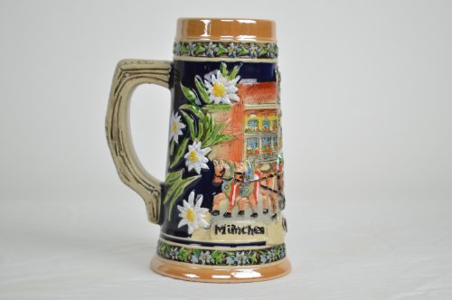 (Essence of Europe Gifts E.H.G)/Kitchen Dining/Bar Tools Glasses/DIRECT FROM USA/Munich Oktoberfest Scenic German Street Scene Engraved Ceramic Beer Stein
