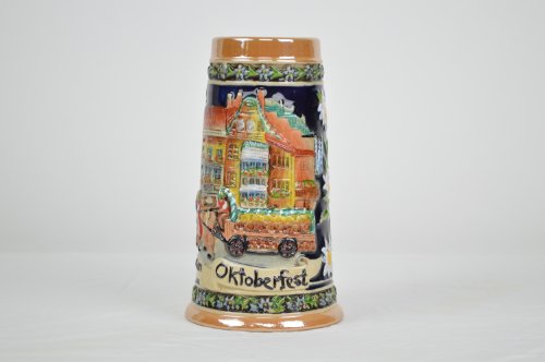 Product Description Quality engraved ceramic beer stein with Munich Oktoberfest Scene 0