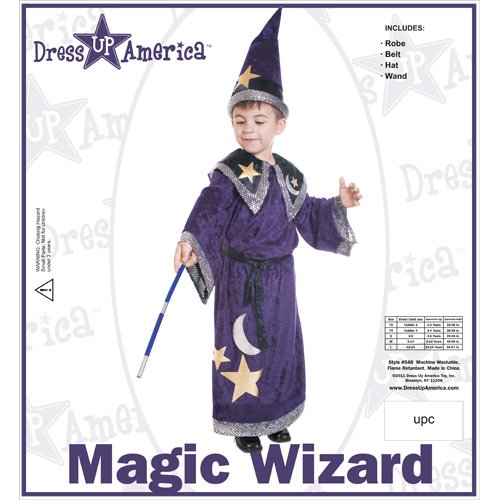 -. Brand : Dress Up America -. Color : Purple -. Department : baby-boys -. Feature : ► Product comes complete with: Robe, Belt, Hat and Wand / ► Product not includes: Shoes / ► Made with 100% Polyester Featuring: resistant to most chemicals, stretching and shrinking, wrinkle resistant, mildew and abrasion resistant / ► Cloak features star and moon motifs / ► Rich purple velour cloak with silver sequined trimming -. Label : Dressup America -. Manufacturer : Dressup America -. Model : 1332-548-S -. MPN : 548-L -. NumberOfItems : 1 -. PackageQuantity : 1 -. PartNumber : 548-L -. ProductGroup : Apparel -. ProductTypeName : BABY_COSTUME -. Publisher : Dressup America -. Size : Large -. SKU : WC23156 -. Studio : Dressup America -. Title : Kids Magic Wizard Costume By Dress Up America