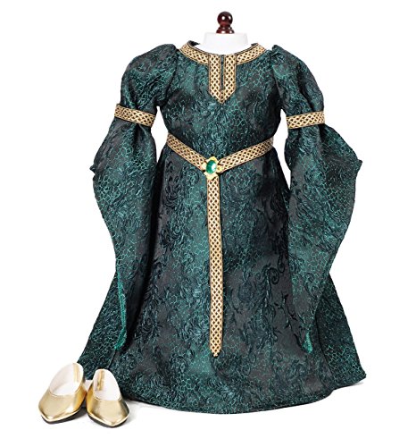 -. Feature : Fits 18" American Girl Dolls / Celtic P.R.Incess Medieval style dress made in green linen / Gold slippers / Includes: Dress and Slippers