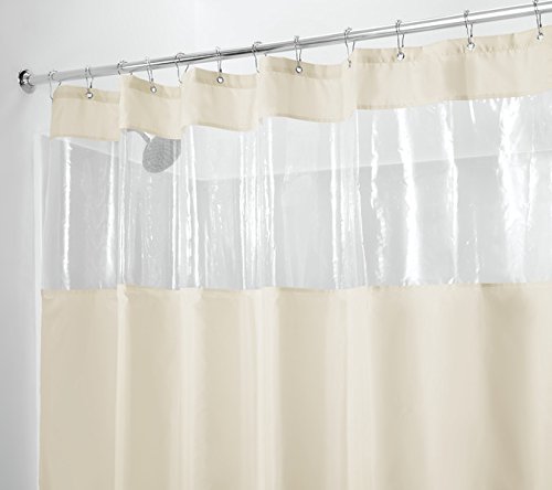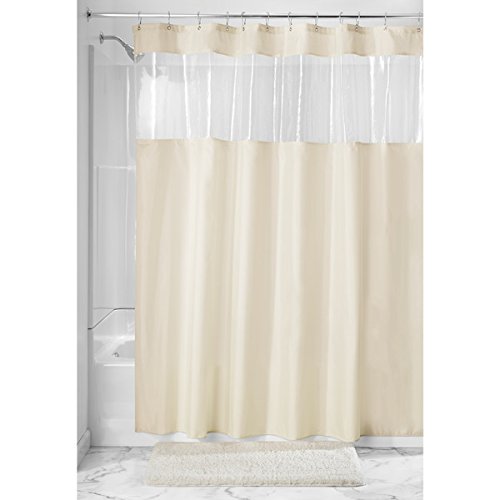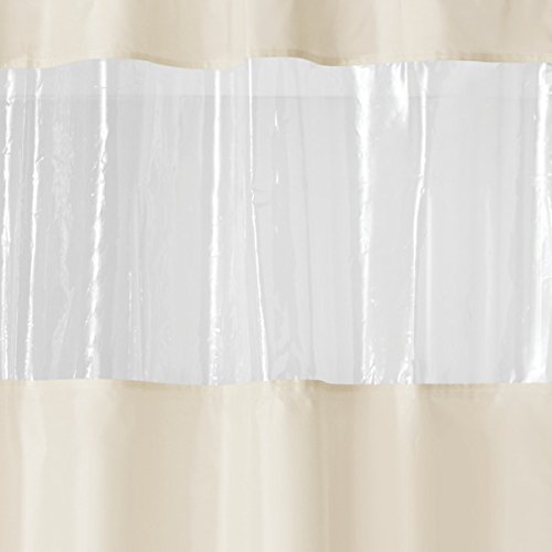mDesign Fabric Shower Curtain with Clear Window for Bathroom - 72" x 72", Sand/Clear