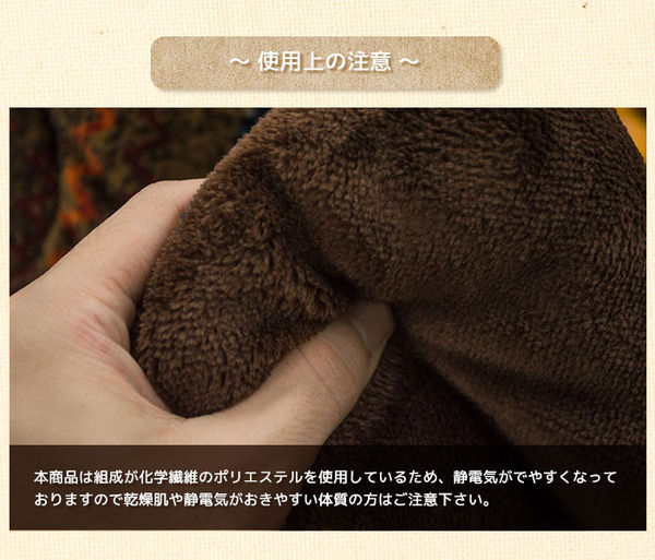 注意点:組成が化学繊維のポリエステルを多く占めているため静電気が発生しやすい仕様となっております。