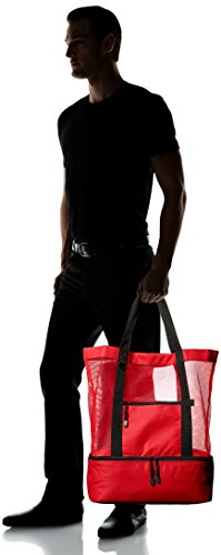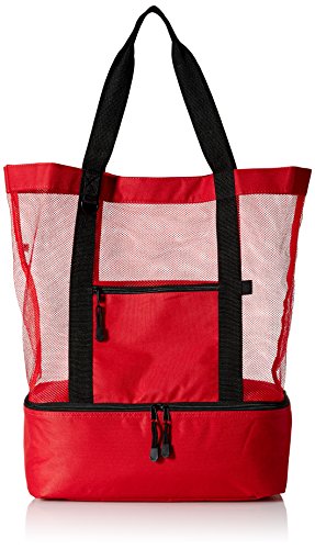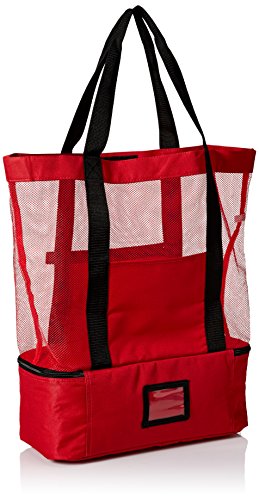 TravelWell Fashionable Beach Picnic 12-Cans Outdoor Mesh Cooler Tote Bag, Red