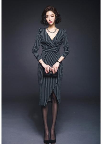 ★落ち着いたストライプ柄と深Vネックがセクシー☆