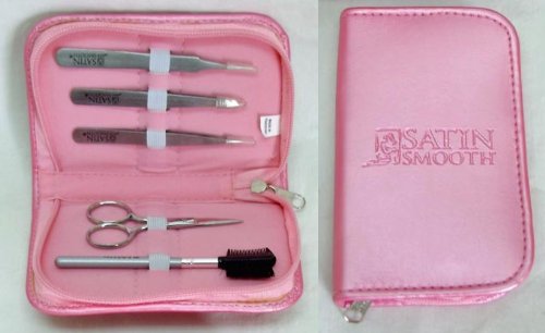 Satin Smooth Stainless Steel 5 Pc Tweezer Scissor Brush Eyebrow Grooming Kit Set