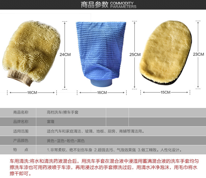 洗车手套 鹿皮擦车手套 双面熊掌毛绒手套 汽车清洁用品单面手套