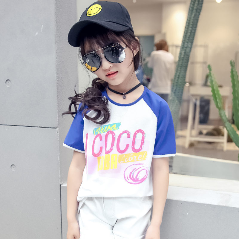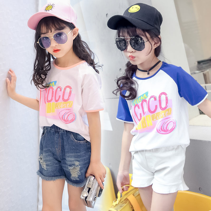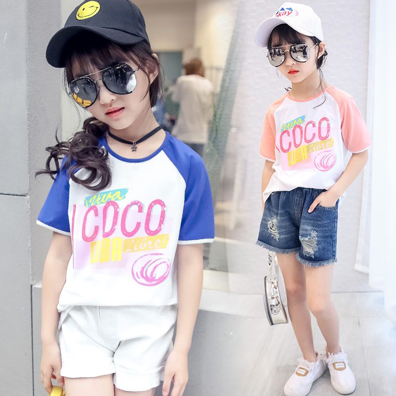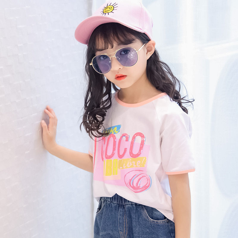 Girls T-shirts Kids O-neck Cotton Tops Children Tees Summer Short Sleeve Letter T-shirts