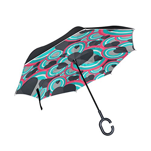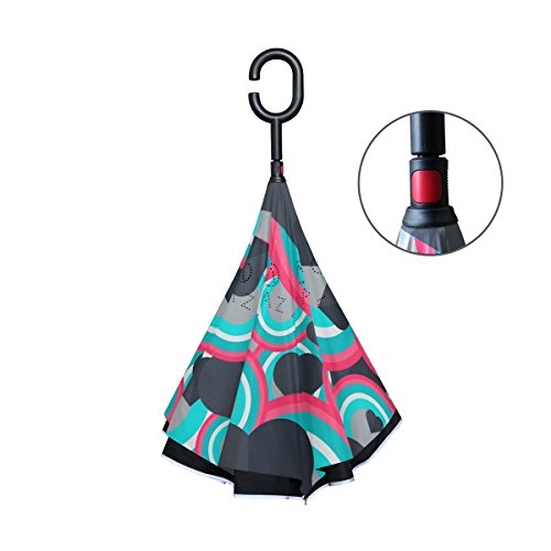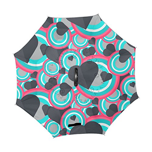 (AHOMY)/Accessories/Umbrellas/DIRECT FROM USA/AHOMY Valentine's Day Heart Geometric Figure Round Large Double Layer Inverted Umbrella Windpro...