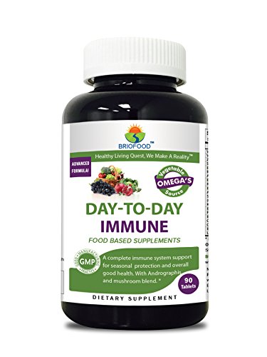 -. Binding : Health and Beauty -. Brand : Briofood -. EAN : 0851922006126 -. Feature : Healthy Living Quest, We Make A Reality / Formulated with special Brio-Immune blend consisting botanicals and herbs to help support boosting immunity for seasonal protection / Product is formulated with Brio-mushroom blend to help support the immune system. Brio vegetable omegas help promote cardio health and Brio fruit and vegetable blend to give optimal nutritional value in each serving. / All Briofood products are manufactured in the USA in accordance with Good Manufacturing Practices (GMP), among the highest quality standards in the world. / Briofood Day-To-Day Immune is formulated with 25 Million CFU probiotics that supports digestive balance and may boost overall immune health. -. IsAdultProduct : 0 -. Label : Briofood -. Manufacturer : Briofood -. MPN : BF -. PackageQuantity : 1 -. PartNumber : BF -. ProductGroup : Health and Beauty -. ProductTypeName : HEALTH_PERSONAL_CARE -. Publisher : Briofood -. Studio : Briofood -. Title : Briofood, DAY-TO-DAY Food Based Immune (90 Tablets) with Vegetable Source Omegas -. UPC : 851922006126