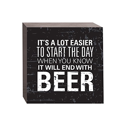 - Reads "It's a lot easier to start the day when you know it will end with beer"