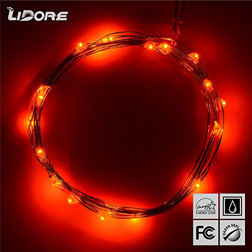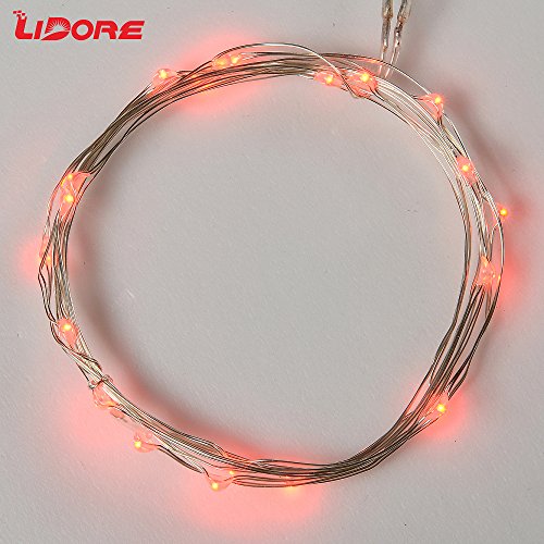 LIDORE Micro LED 20 Red Lights with Timer, Battery Operated on 7.87ft Long Silver Color Ultra Thin String Wire