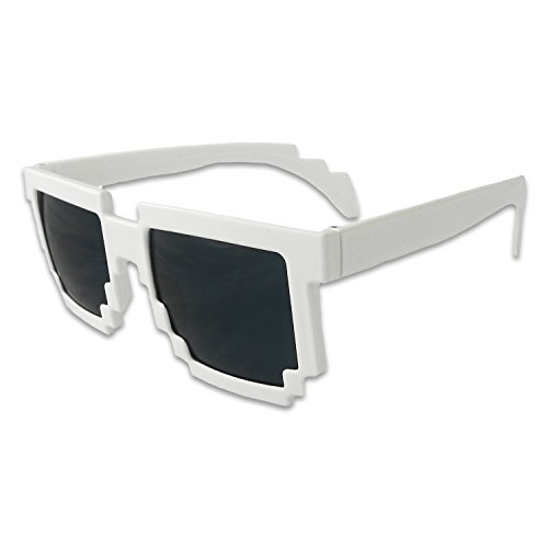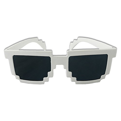 8-Bit Pixel Retro Computer Sun Glasses Nerd Sunglasses 8 Bit (White)
