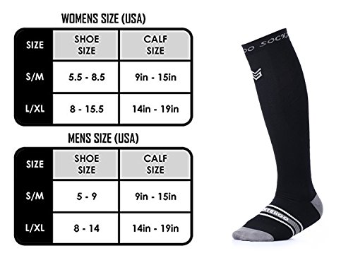 - IMPROVED BLOOD CIRCULATION WITH GRADUATED COMPRESSION – Our graduation compression technology (20-30mmHg) provides the ideal compression to provide the maximum boost to your blood circulation. Better oxygen circulation provided by our compression socks helps reduce lactic acid build up and aids muscle recovery in your calf, ankle, feet, and legs. Why let yourself suffer any longer? Let our compression socks help you promote recovery, reduce injury, and feel great again!
