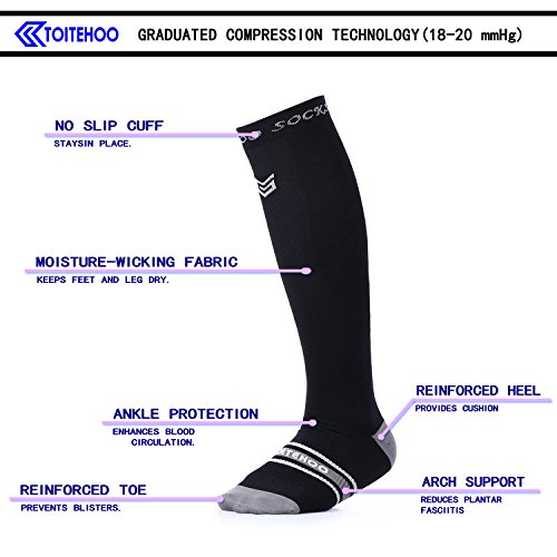 Compression Socks for Men & Women, TOITEHOO Best Graduated Athletic Running Socks Fit for Running, Nurses, Shin Splints, Flight Travel, & Maternity...