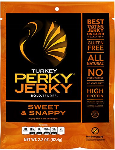 ReleaseDate : 2015-05-28 Studio : Perky Jerky Publisher : Perky Jerky Binding : Grocery Product Description A spicy kick in the sweet spot...sweet at first, then nails you with a spicy kick! Perky Jerky is an all natural, premium jerky that is unlike any other. Tender cuts of meat marinate overnight in a blend of all natural ingredients to create a deliciously bold taste and tender texture. Unlike most jerky products ours has none of the bad stuff: No Nitrates. No Preservatives. No Added MSG. And it's Gluten Free. Satisfying and portable, it’s the perfect fuel for your next adventure. 0