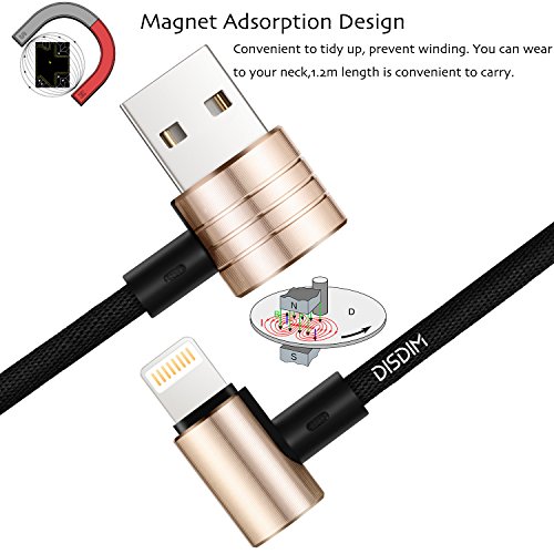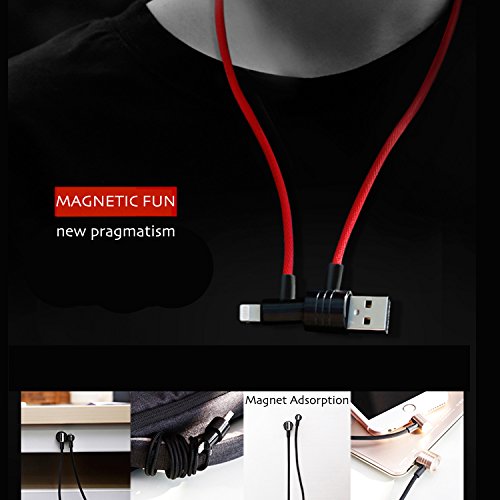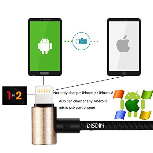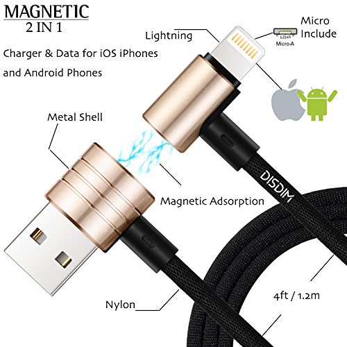 Magnetic Charging Cable, DISDIM 2 in 1 90 Degree Angle Fast Charger Magnetic USB Data Syncing Charging Cord [Lightning Connector + Micro USB Connector] for iPhone 7/7Plus iPad Android Samsung Nokia