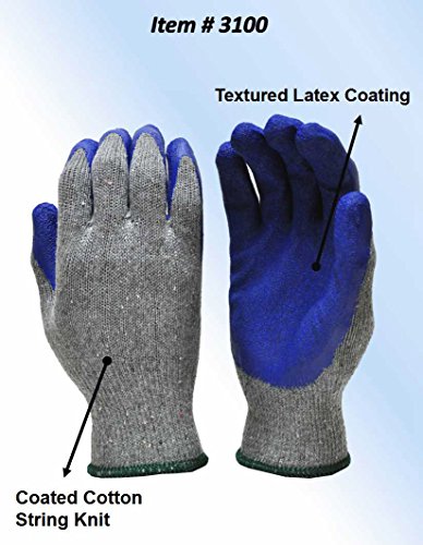 G & F 3100L-DZ Knit Work Gloves, Textured Rubber Latex Coated for Construction, 12-Pairs, Men's Large