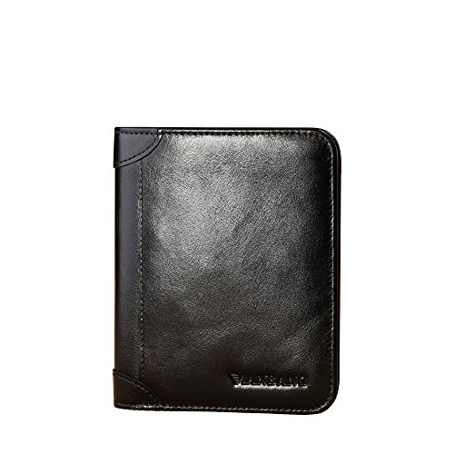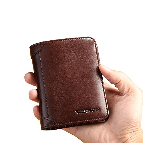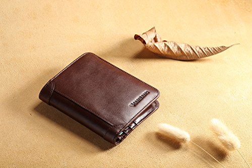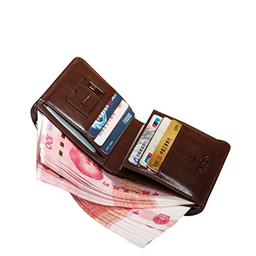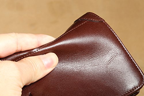 -. Feature : Material: Genuine Cowhide leather after waxing process imported from Italy, soft and comfortable / Polyester lining, smooth and durable / Dimensions: L 3.7'' x W 4.7'' x H 0.6'', great fit for use / Capacity: 6 card slots, 3 inside slots, 2 ID window, 2 SD card slot, 1 SIM card slot, 2 long slots / As genuine cowhide leather wallet, it will become brighter and brighter over time