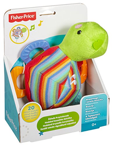 An adorable turtle pal to help soothe and entertain baby with 15 minutes of sweet music, soft knit shell and a variety of teething textures. He's easy for little hands to grasp, hold and cuddle.