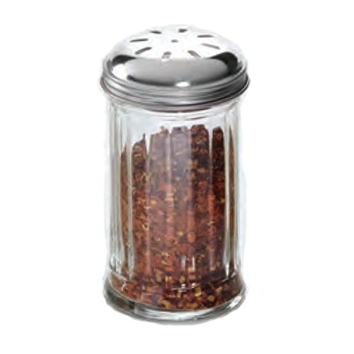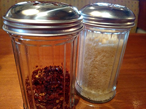 Grated Parmasan Cheese & Red Pepper Shaker (Set of 2) Fluted Glass with Stainless Steel Lids, Large Holes For Cheese, Slotted holes for Pepper or other Spices 12 Ounce