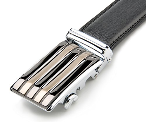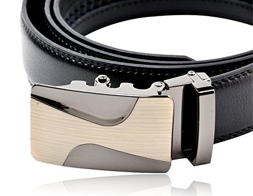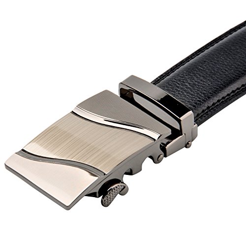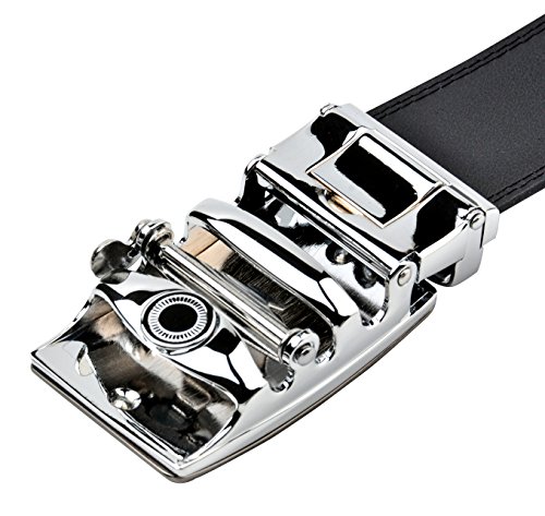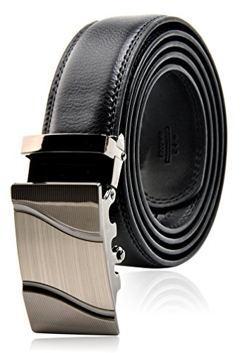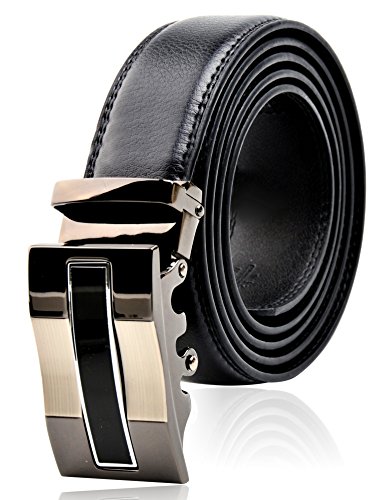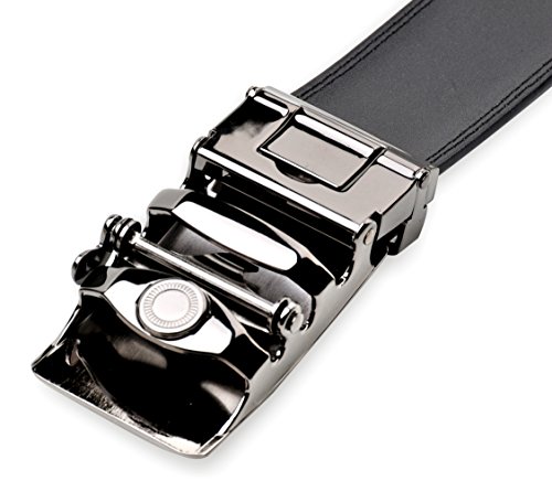 STYLISH, DURABLE BLACK MEN's BELT w/ POPULAR SLIDING RATCHET BUCKLE is just what every guy needs to complete his look. Works well for business and pleasure. This belt goes well with everything from suits to jeans. You always look stylish and handsome wearing this very high quality belt.