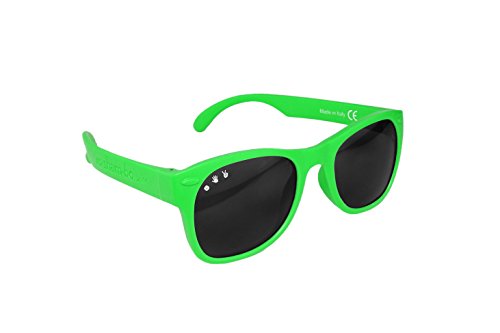 Product Description Protect Your Eyes With These Shades That are Made in Italy Just Like Your Designer Shades!These shades have polarized lens and block 100% of UVA and UVB rays. They are incredibly durable, and the lens is shatter resistant. Stylish and fun for the hip and fashion-forward with nostalgic 90's pop culture names to make you smile. A Percentage of Sales is Donated to Autism Research and SupportThe "roshambo" name pays tribute to our charitable cause: a game of "rock, paper, scissors" (otherwise known as roshambo!) can be a great teaching tool for autistic students that need extra attention or calming without disrupting the class. A portion of all sales support the critical work of the San Diego-based Autism Research Institute, a Charity Navigator 4-star charity providing research, training, and support for families affected by autism. All Shades from Roshambo Baby are Made out of the Best, Safe Materialsroshambo baby's flexible but durable material is certified BPA and phthalate-free and is specially designed for use and abuse. They can be twisted, and dropped, and lived in without breaking. They are so safe that they even mold the logos in to avoid unnecessary paint. Sizing Note:Adult Small fits slightly smaller than traditional RayBan Wayfarers. Adult Large fits a bit larger than Wayfarers. Generally speaking, Small will fit more women, Large will fit more men. 0