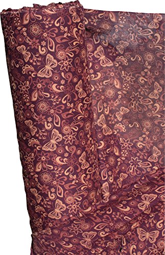 RaanPahMuang Thin Gauze Summer Cotton Printed Flying Butterflies and Flowers, Purple